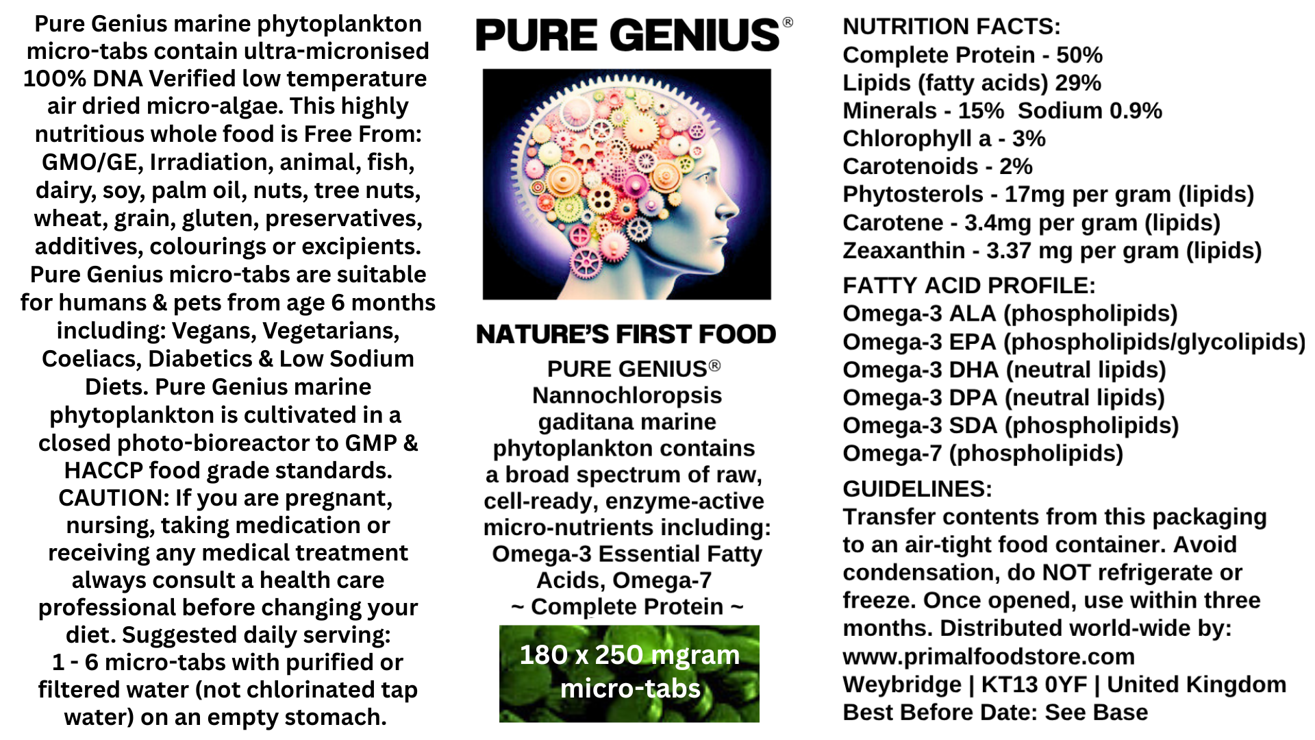 Incredible opportunity: For a limited time Primal Food Store customers can purchase one pack only of Pure Genius Nannochloropsis Micro-Tabs for just £1.00!